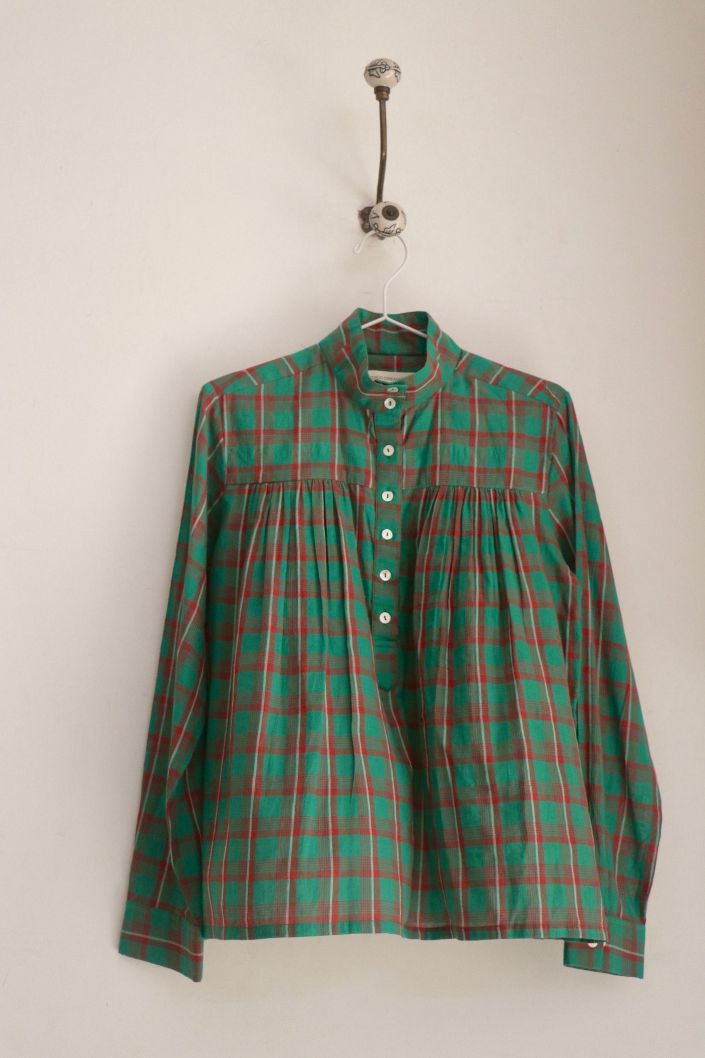 Dry clean only + iron with care. Do not bleach.